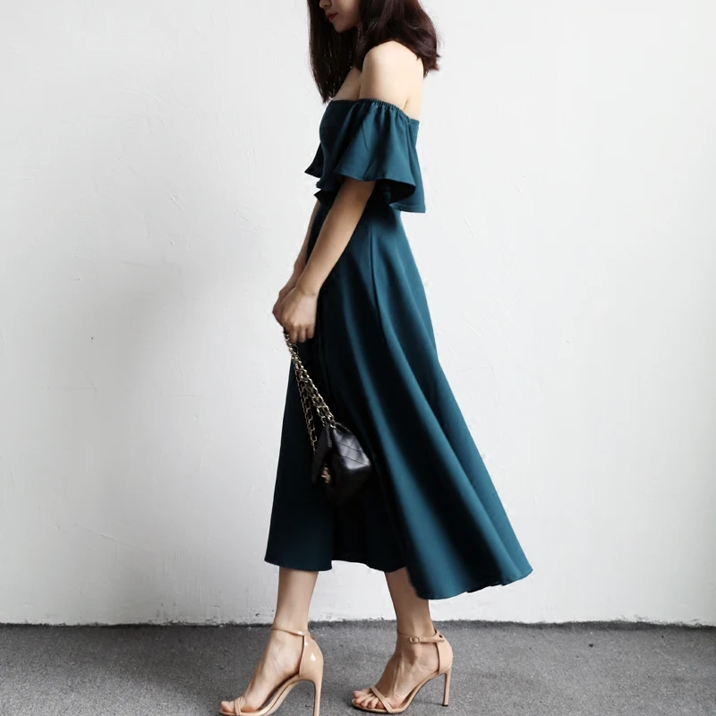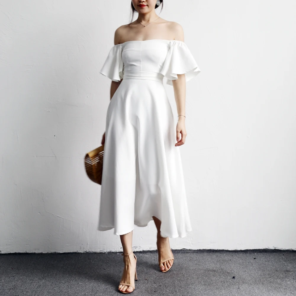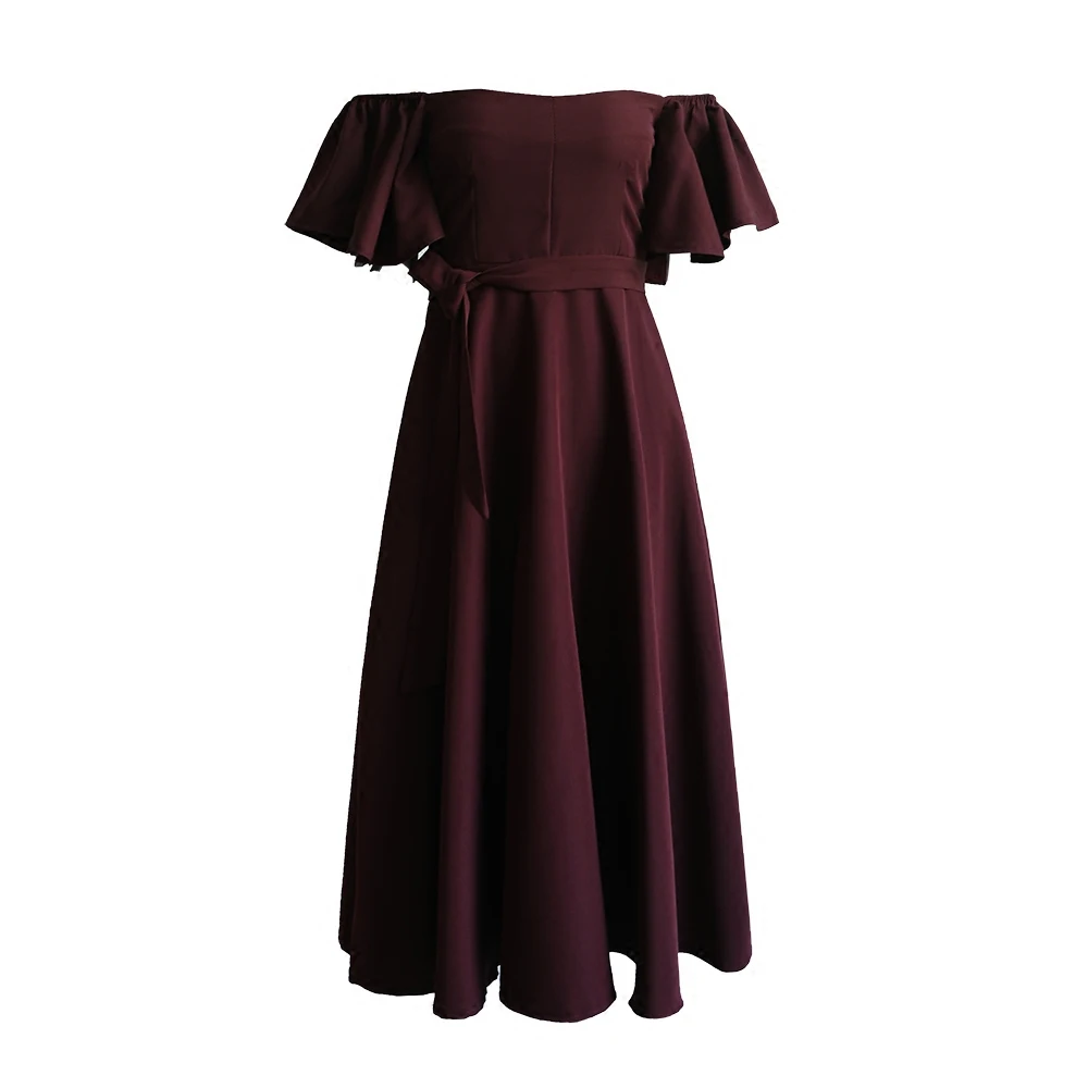 Sale Women Elegant Flare Trumpet Sleeve Sexy Off Shoulder Sashes Fashion Slim Casual Party Club Bodycon