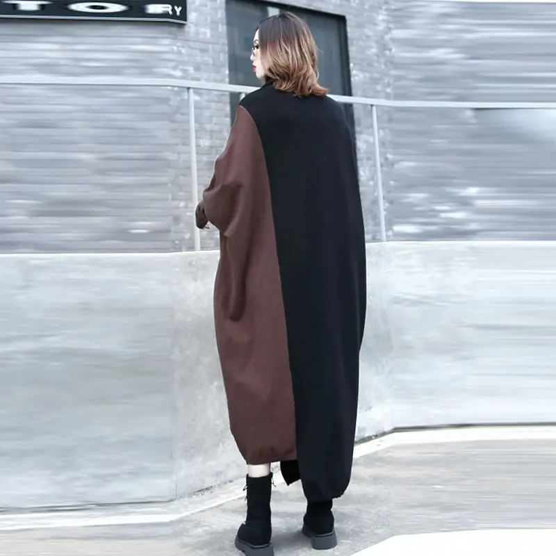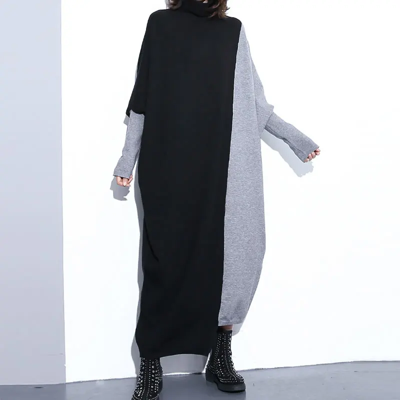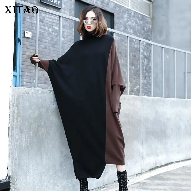 Discount XITAO Patchwork Hit Color Plus Size Dress Women Clothes 2019 Fashion Turtleneck Batwing Sleeve Eleg