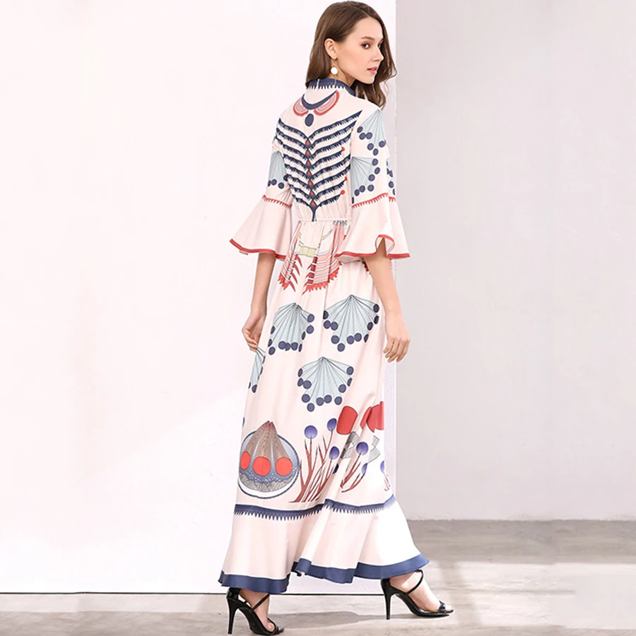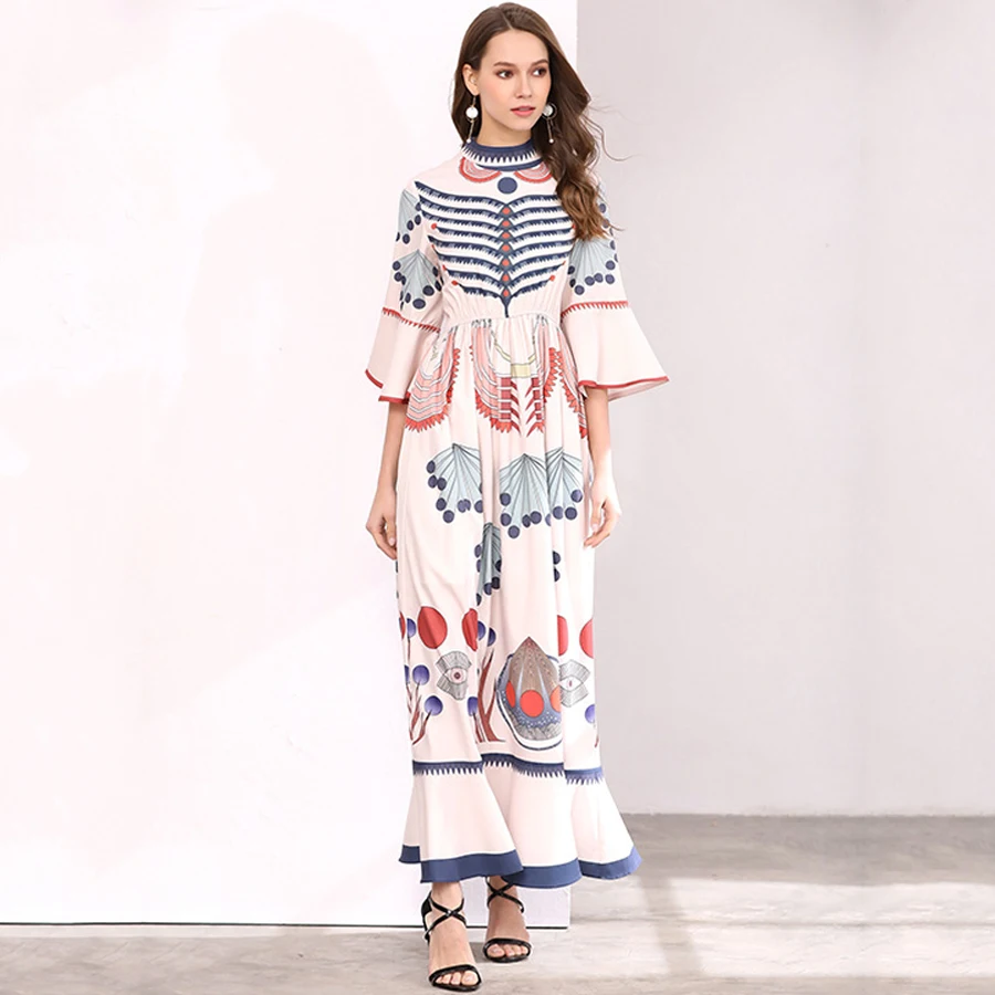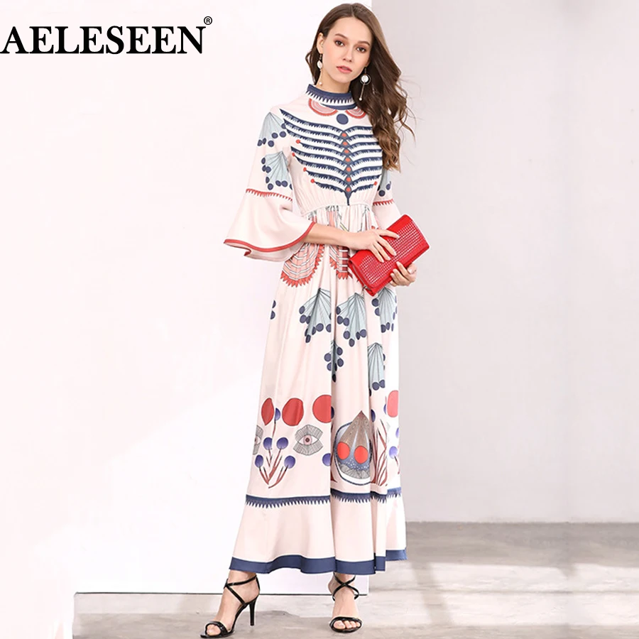 Discount AELESEEN Summer Bohemian Women Long Dresses Luxury Flare Sleeve Runway Fashion 2018 Plus Size Abstr
