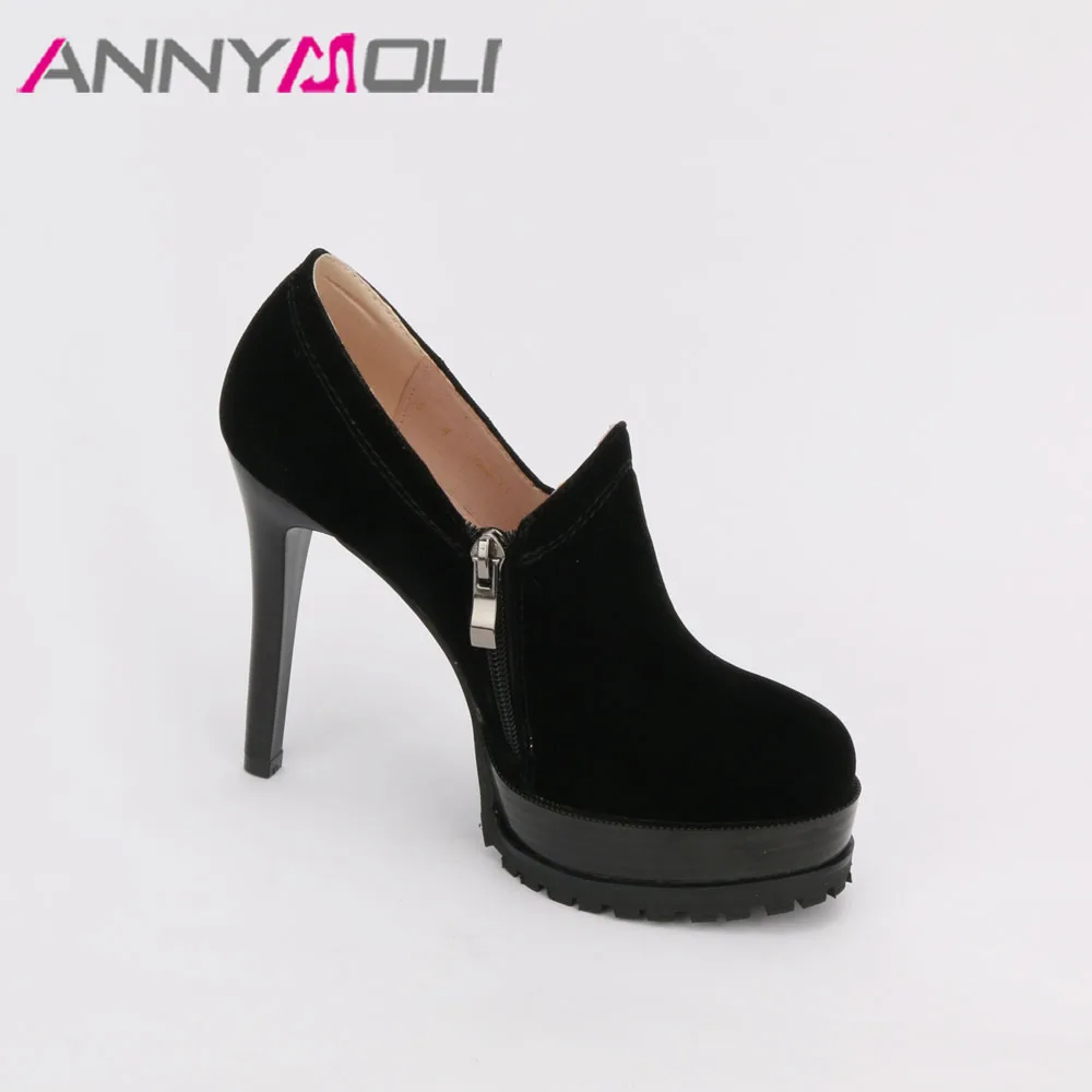 Get ANNYMOLI Women Platform Shoes Extreme High Heels Zip Shoes Thin Heel Party Shoes Black Red Large Si