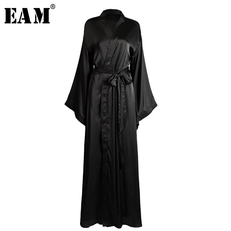 Buy [EAM] 2020 New Autumn Winter Long Sleeve Bandage Belt Irregular Thin Personality Temperament Long D