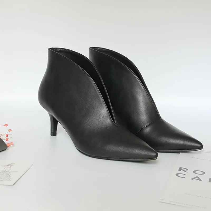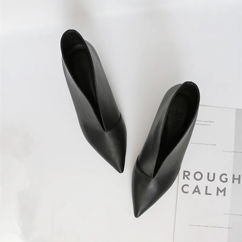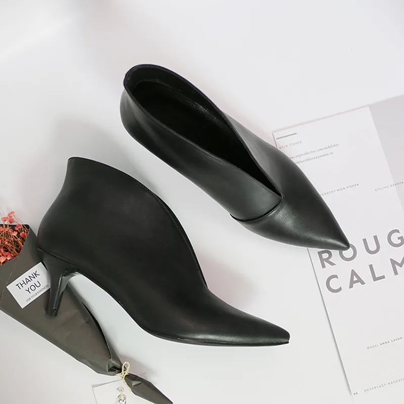 Hot Fashion high heels black Matte leather women shoes Tip head v mouth autumn winter Heels Female pump