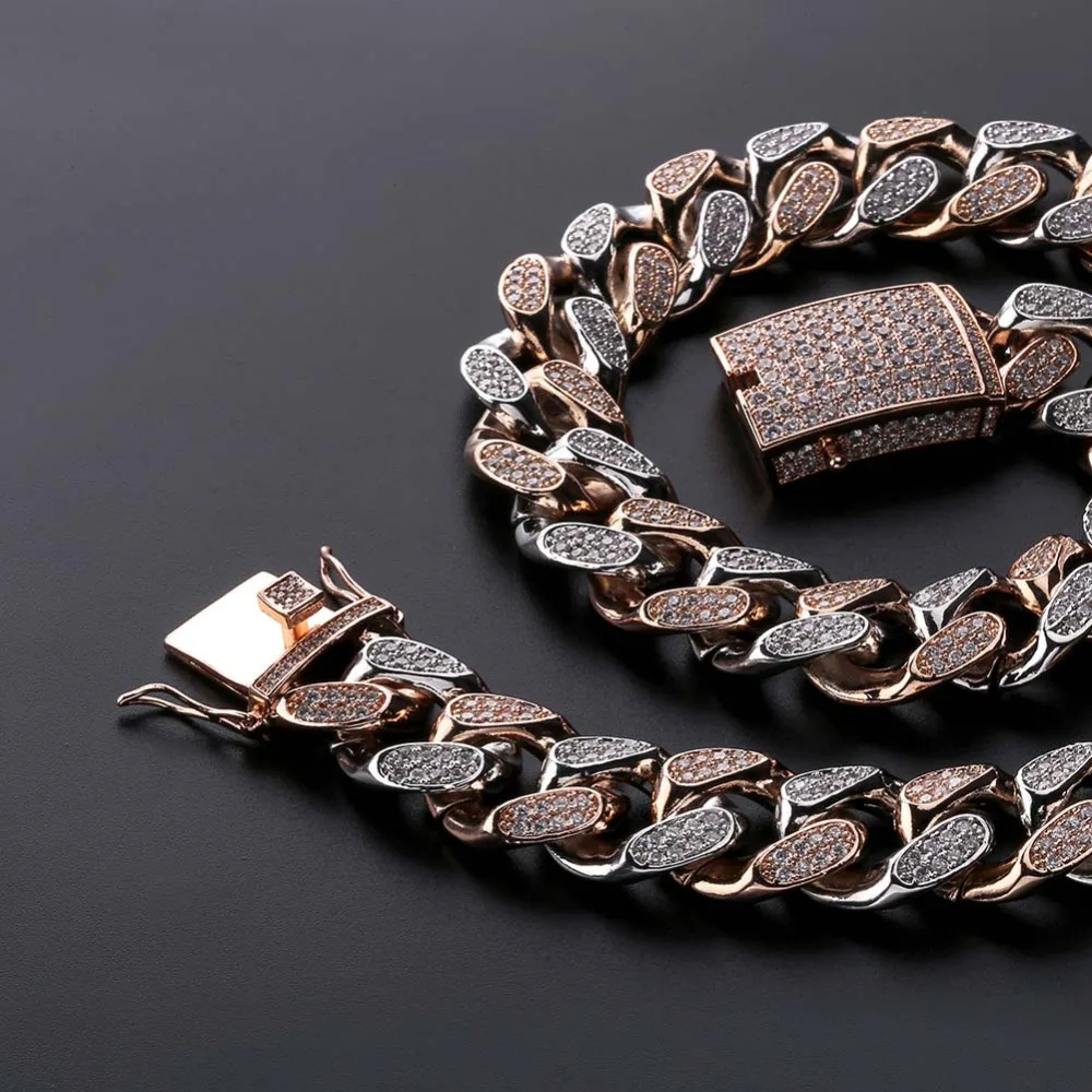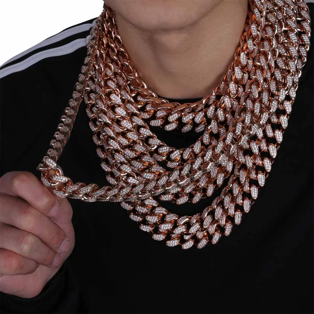 NEW JINAO 14mm Iced Out Chain Zircon Miami Men Cuban Link Necklace Copper Choker Bling Hip Hop Jewelry