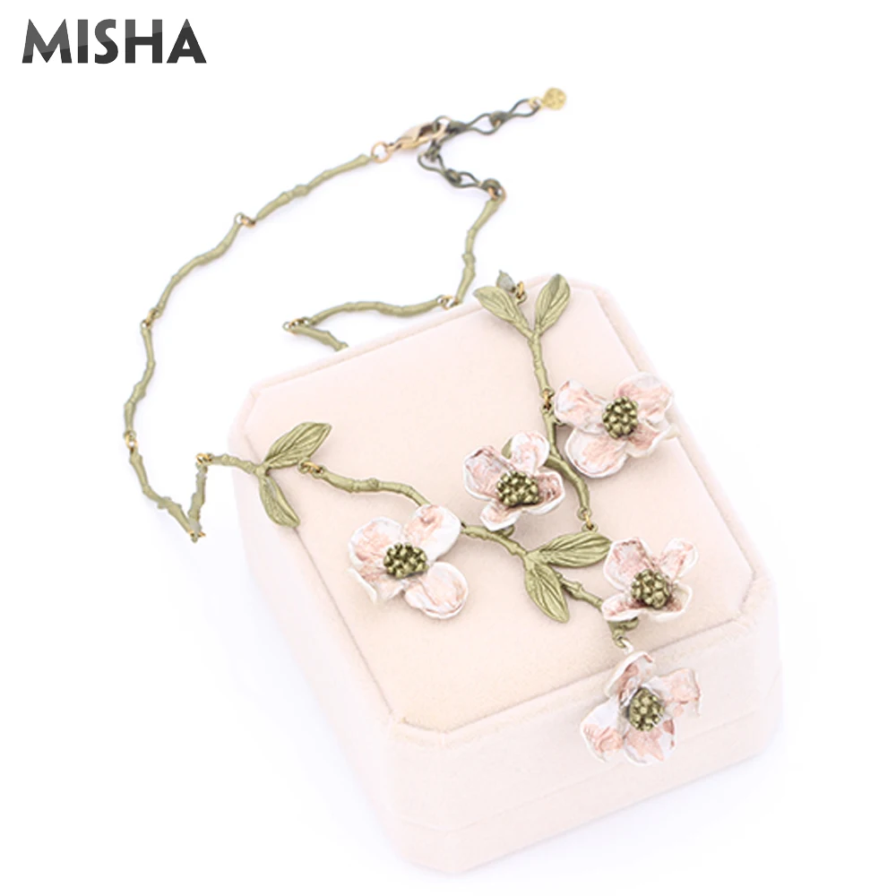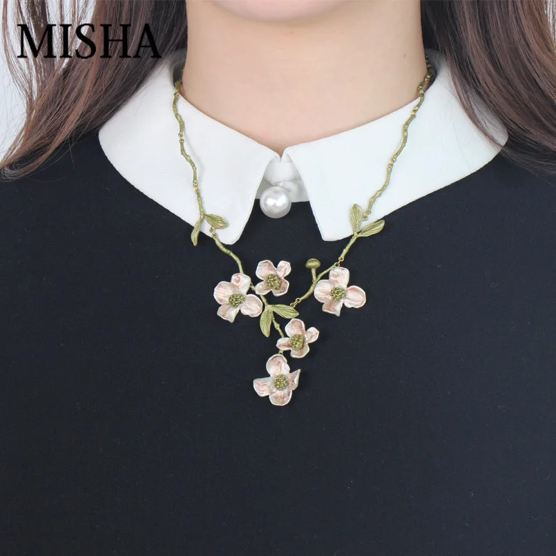NEW MISHA Fashion Girls Cute Necklace Jewelry Handmade Rhododendron Luxury Enamel Glaze Necklace Women
