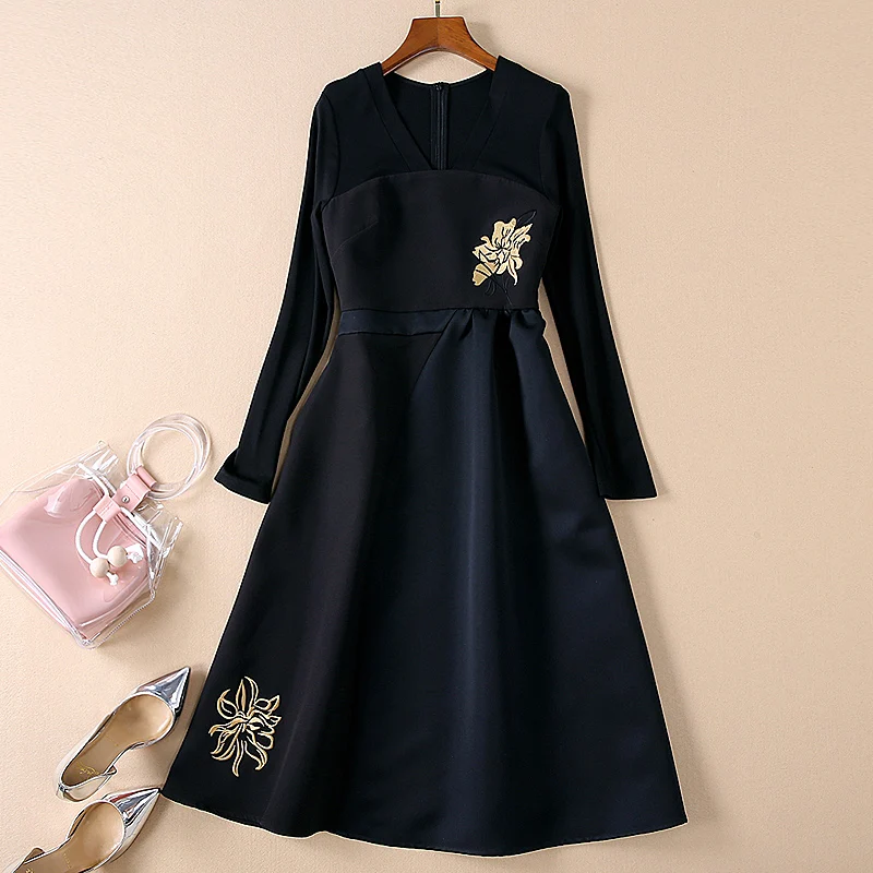 NEW Runway High Quality 2019 Spring New Women'S Fashion Party Work Sexy Vintage Elegant Chic Embroidery