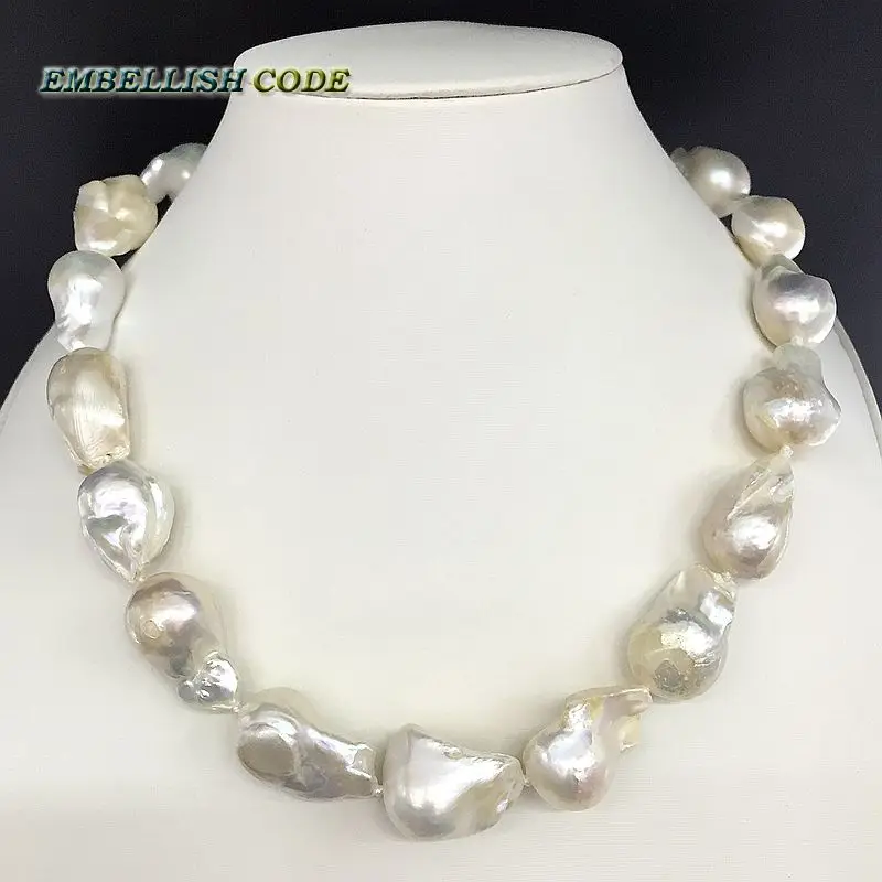 NEW Selling well white color large size tissue nucleated flame ball shape baroque pearl necklace freshw