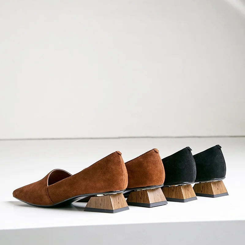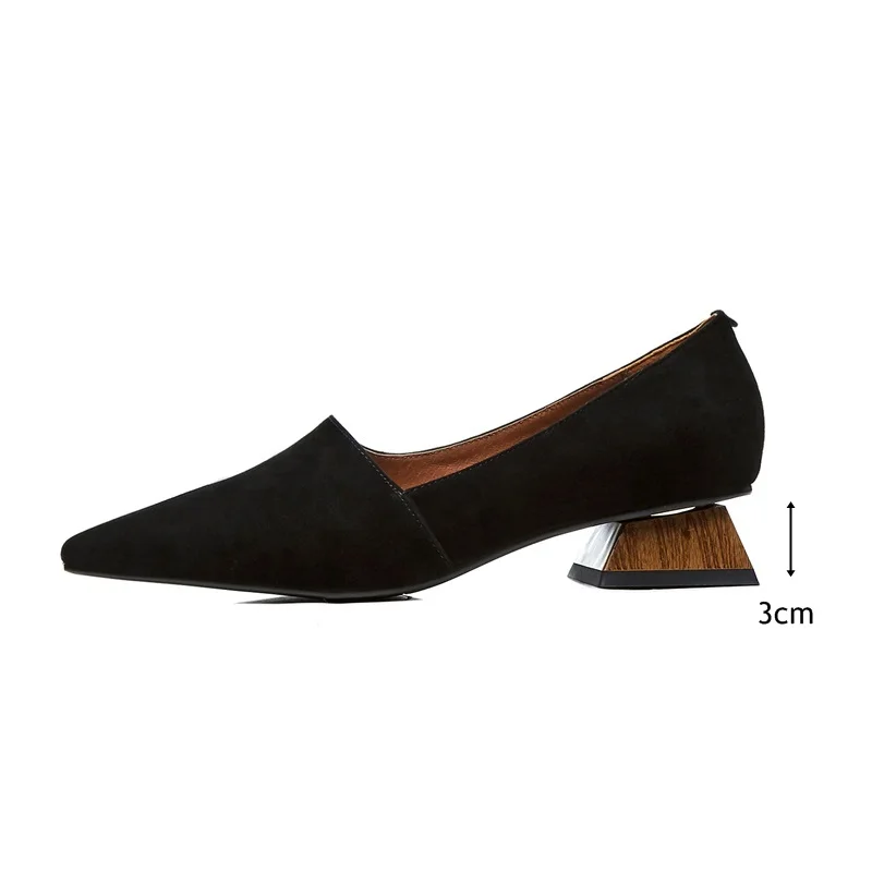 NEW ZVQ women pointed toe fashion heels square thick low heel ladies kid suede upper woman spring shoes