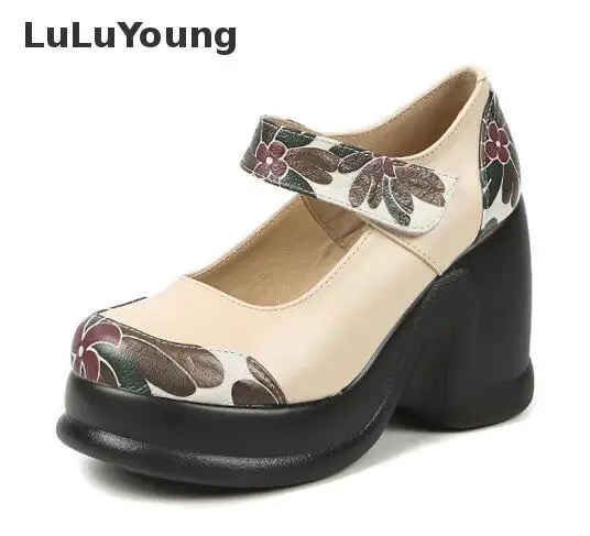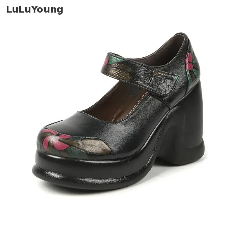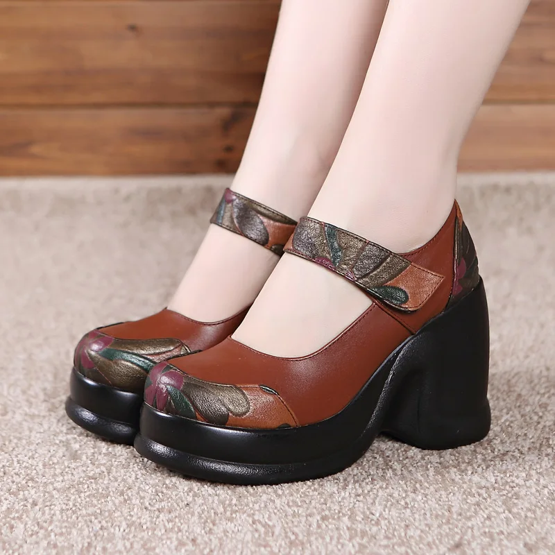 Hot genuine leather shoes platform shoes high heel pumps print color wedges shoes for woman sy-2011