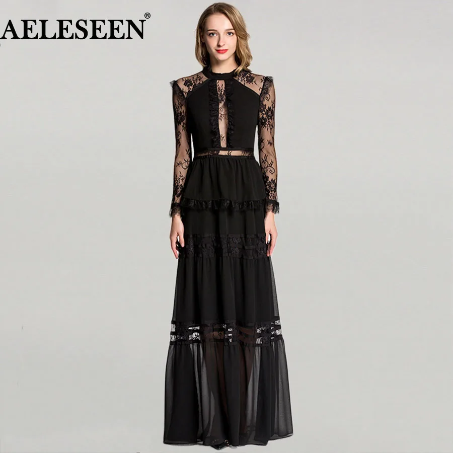 Hot Ladies Lace Sexy Long Dresses Uk 2018 Full Sleeve New Arrival Winter Maxi Party dress Fashion Desig