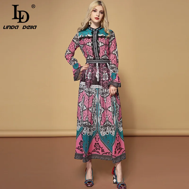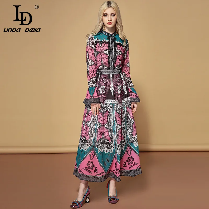 Buy LD LINDA DELLA Fashion Runway Autumn Long Sleeve Dress Women's Lace Patchwork Multicolor Floral Pri