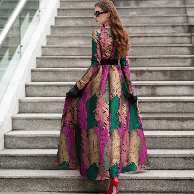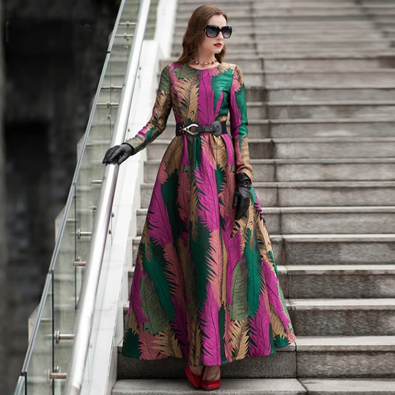 Sale Plus Size 2019 Good Quality Spring Women Boho Long Sleeves Fashion Dress Floral Jacquard New Autumn