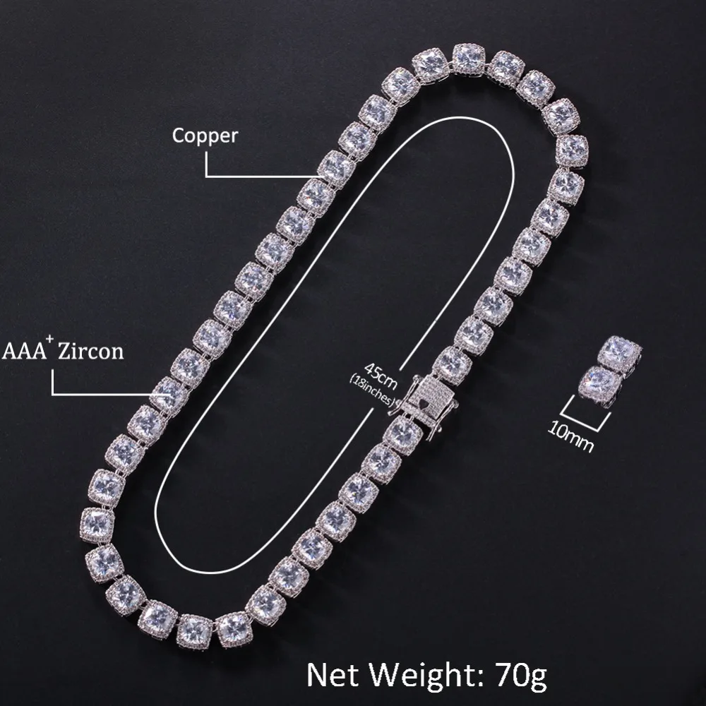 Hot 10mm Wide Hip Hop Bling Iced Out 1 Row Geometric Square AAA CZ Stone Tennis Chain Cubic Zirconia Ch