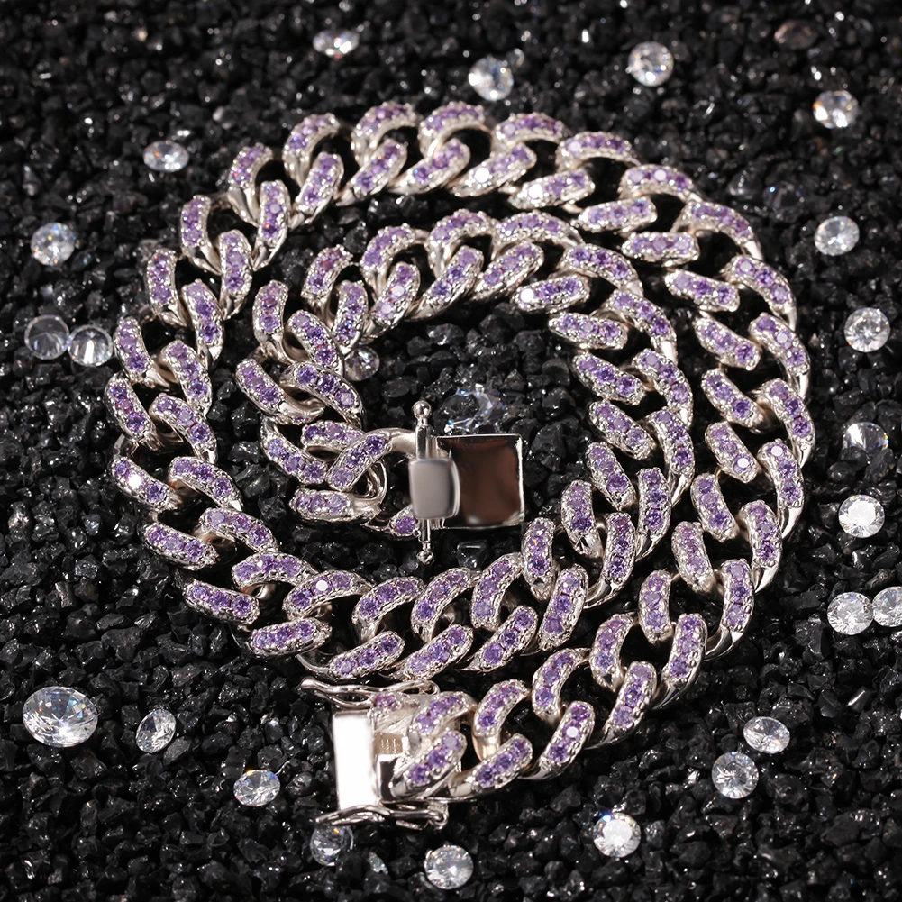 Discount THE BLING KING 12mm Micro Pave Iced CZ Cuban Link Necklaces pink and purple Luxury Bling Bling Jewe
