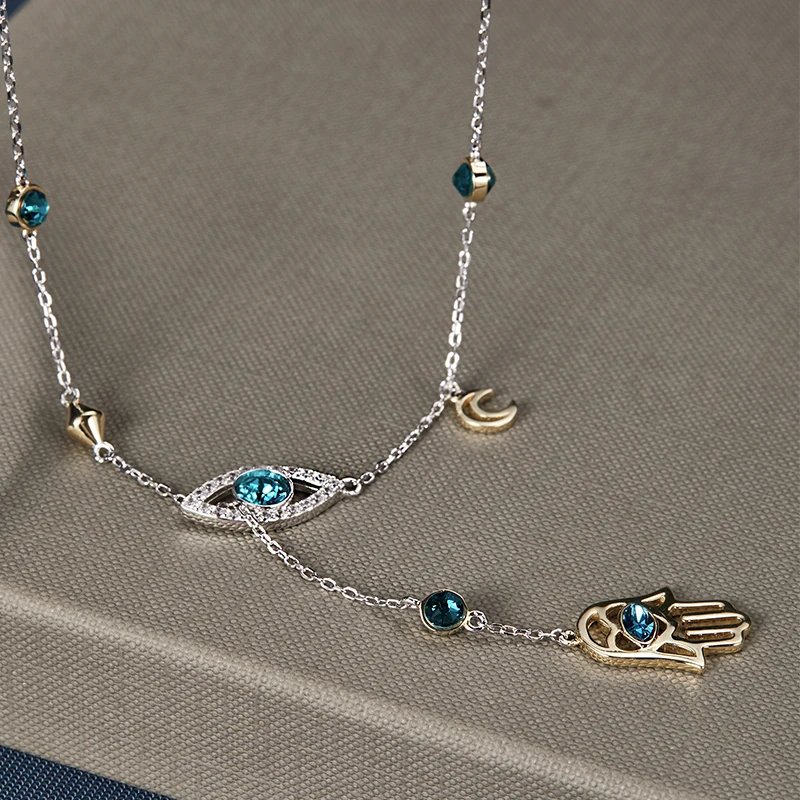 Sale LEKANI 2019 Exquisite Crystals from Swarovski Clavicle Chain Choker Devil Eye Hand Hamsa Pendant Wo
