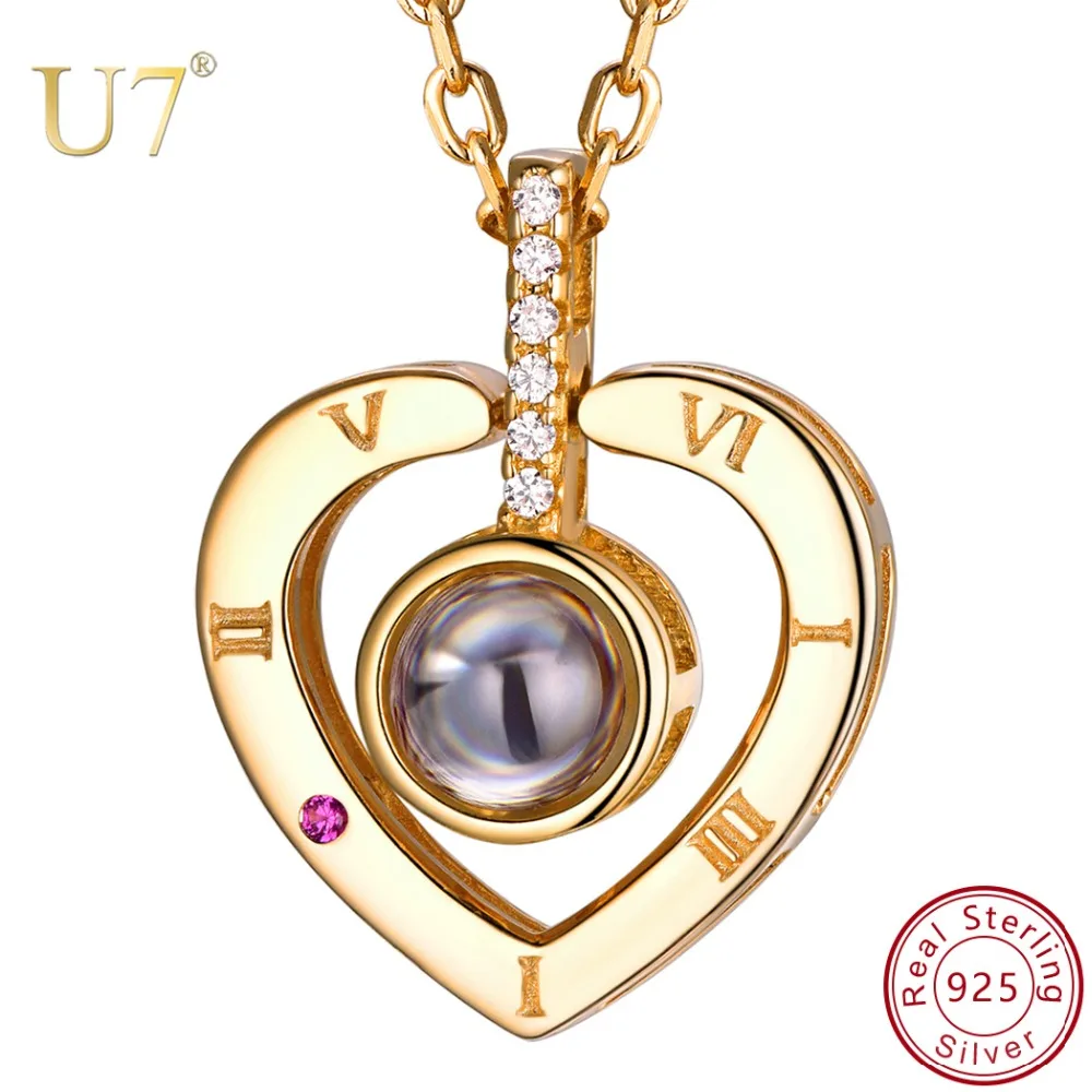 NEW U7 925 Sterling Silver Women Necklace Nano Engraved I LOVE YOU In 100 Languages Customized Jewelry