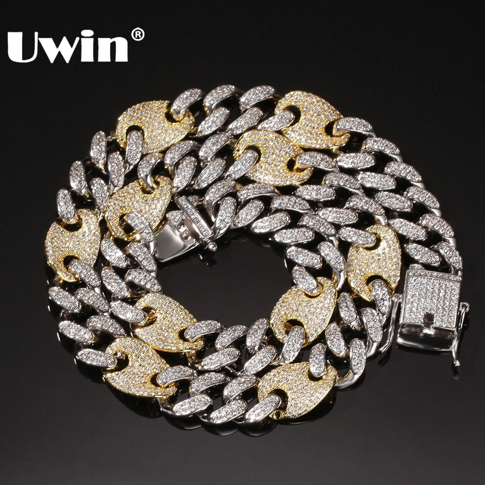Hot UWIN Bling Bling Miami Iced Out Cuban Link Chains Necklace Mix Color Silver & Gold Color Fashion Hi