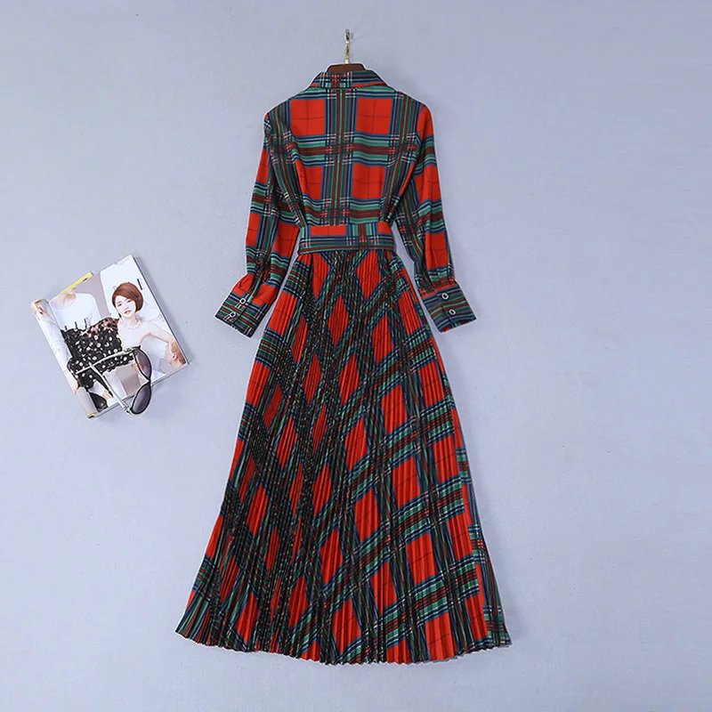 Buy HarleyFashion Plus Size Russian Stylish Design Elegant Women Fashion Classic Plaid Print Pleated Lo