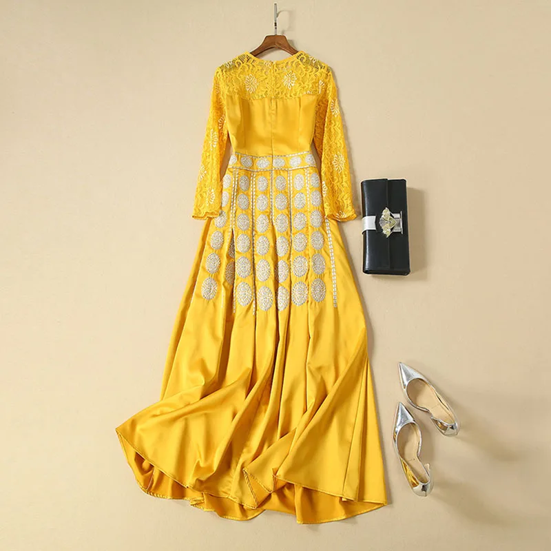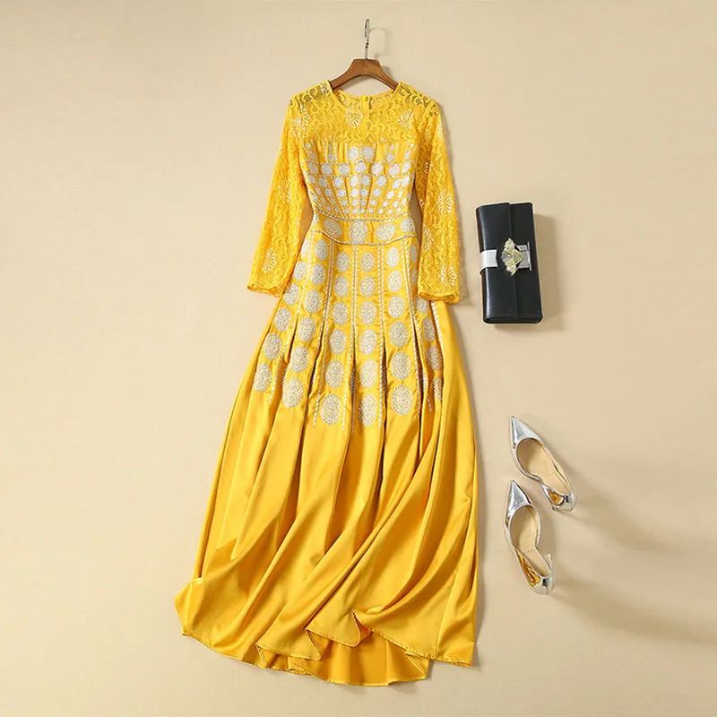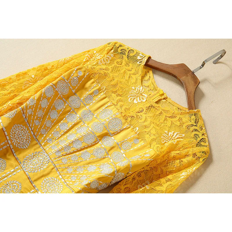 Hot HIGH QUALITY New Fashion 2019 Designer Runway Dress Women's Long Sleeve Lace Patchwork Embroidery L