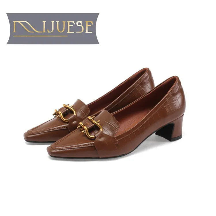 Sale MLJUESE 2020 women pumps autumn spring soft cow leather Metal decoration pointed toe high heels lad
