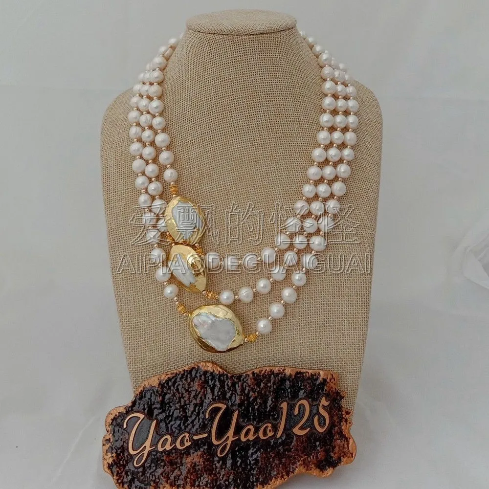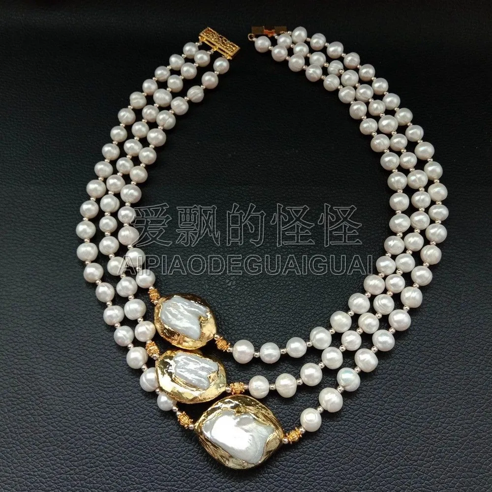 Sale N010625 3 Strands 18''-21'' White Pearl 24 K Golden Plated Keshi Pearl Necklace