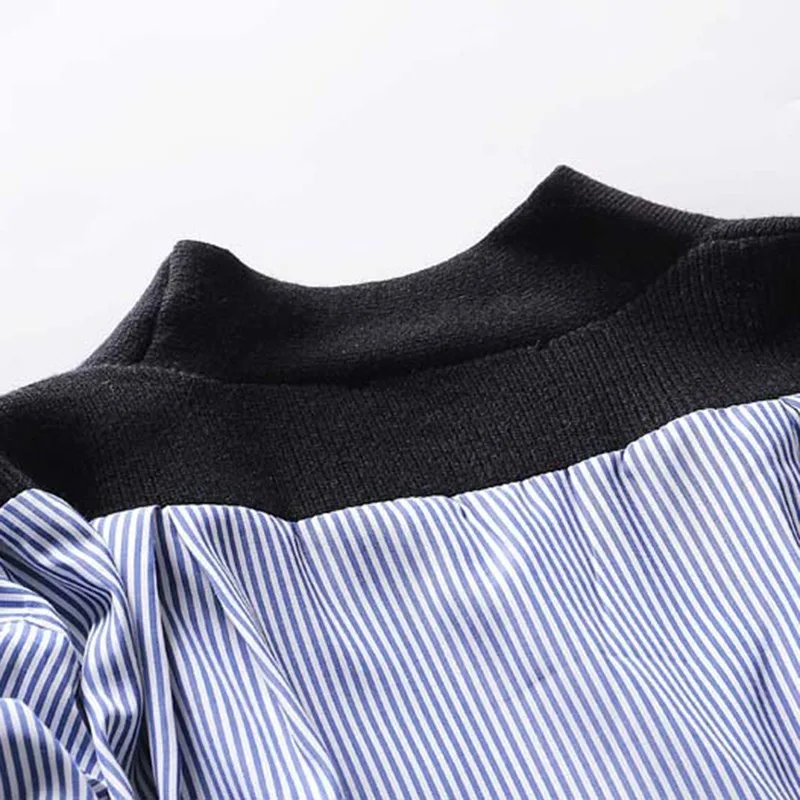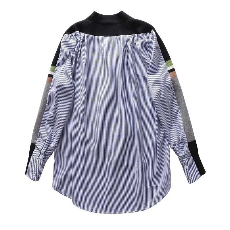 Hot TWOTWINSTYLE Irregular Womens Shirts Blouse V Neck Long Sleeve Patchwork Knitted Top Female Spring
