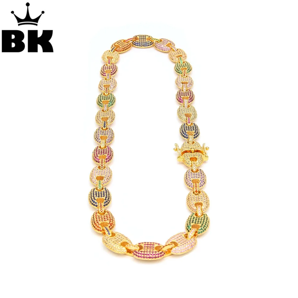 Discount 13mm Iced Out CZ Puffed Mariner Link Choker Chain Necklace Gold Silver Multicolor Cubic Zirconia 16