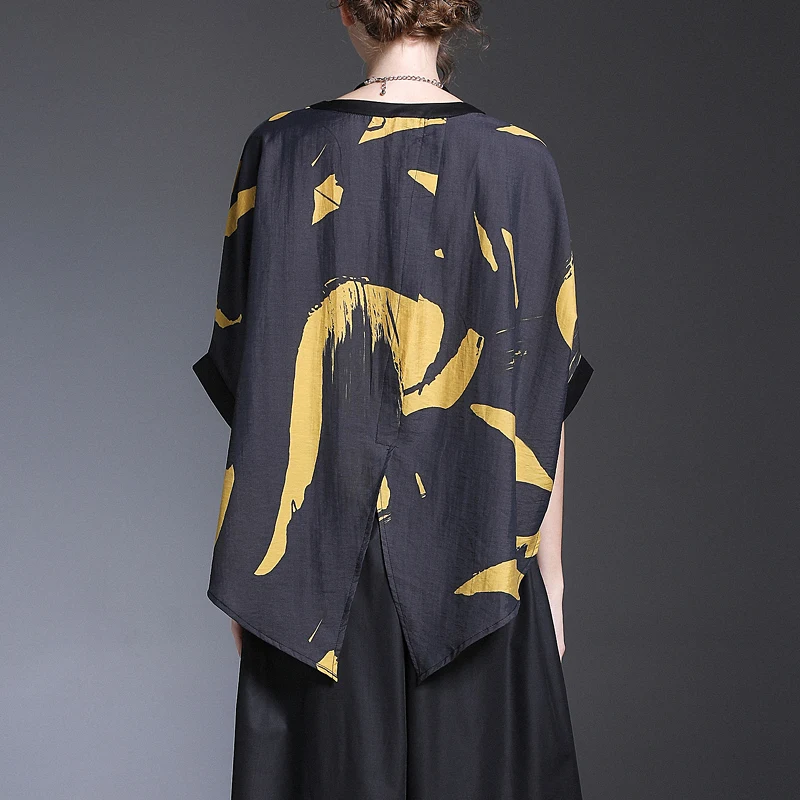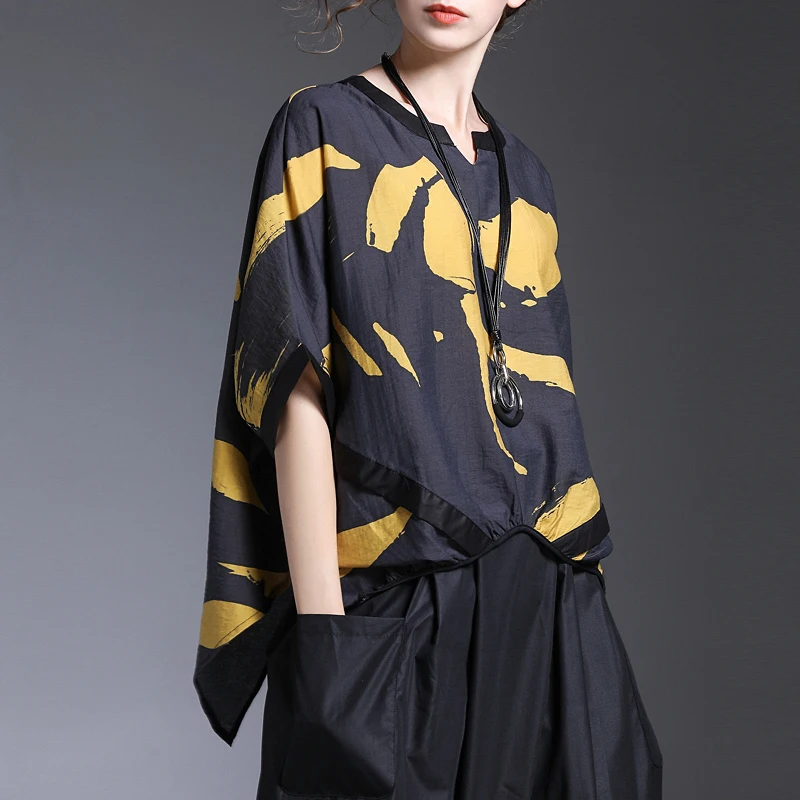 Get [EAM] 2020 New Spring Summer V-collar Half Sleeve Print Pattern Temperament Loose Big Size Shirt Wo