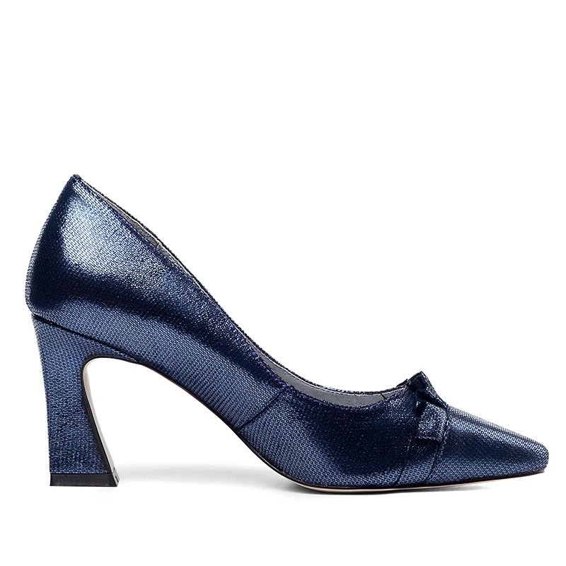 Discount ISNOM Emboss Sheepskin Pumps Women High Heels Pumps Woman Pleated Shoes Female Party Pointed Toe Sh