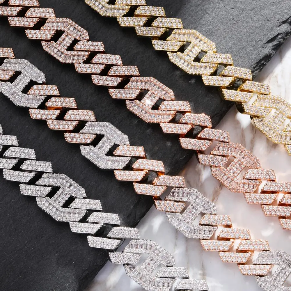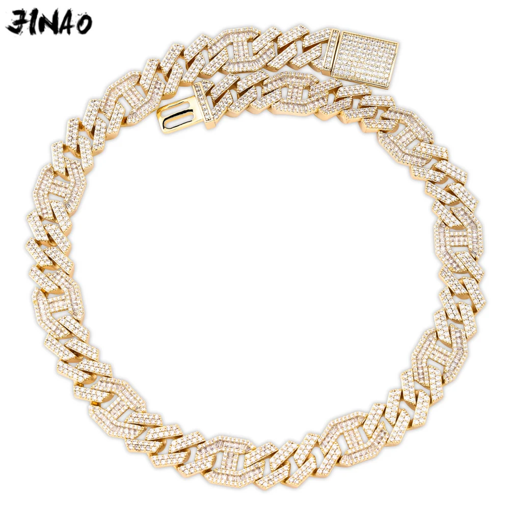 NEW JINAO Men 14mm Iced Out Chain Zircon Miami Cuban Link Baguette Zircon Necklace Bling Hip Hop Jewelr