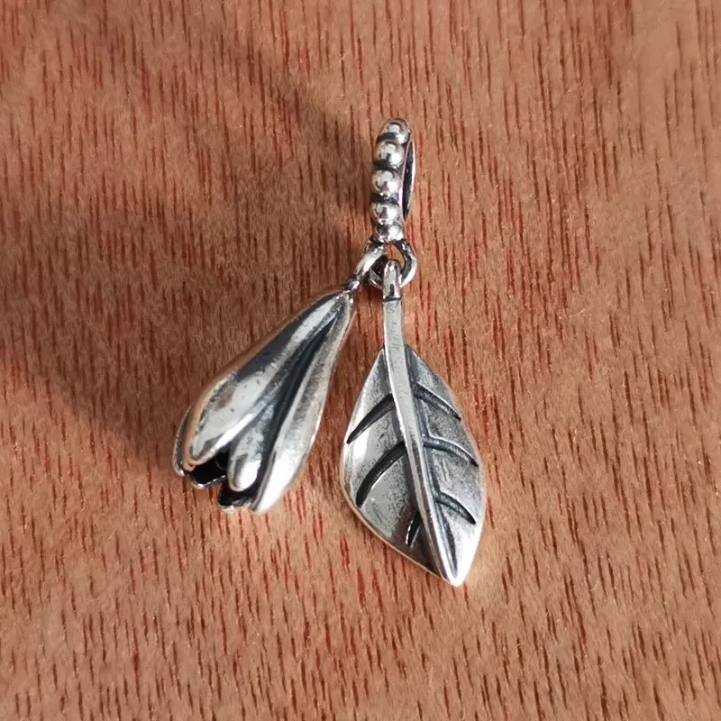 Sale S925 Sterling Silver Magnolia necklace bracelet pendant Pendant Charm Fit Original Troll Bracelet T