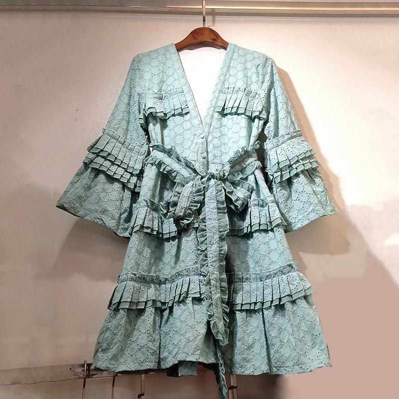 Sale SMTHMA 2019 New Autumn And Winter Elegant Dresses Women V Neck Flare Sleeve High Waist Runway Dress