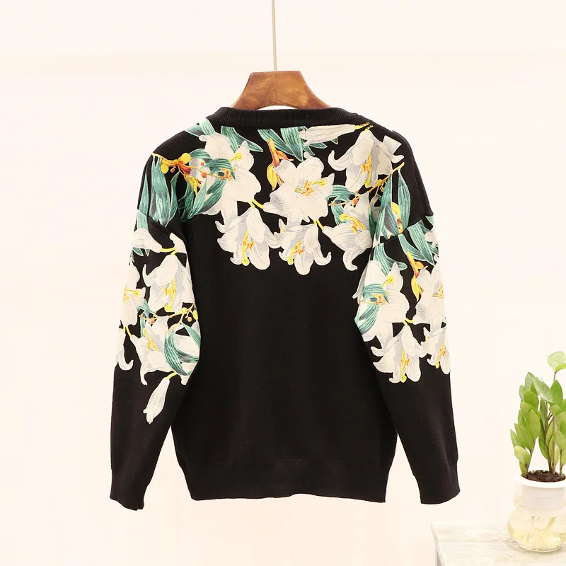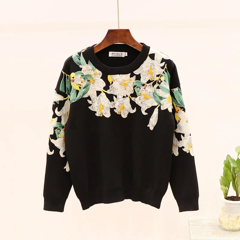 Sale Autumn Sweater Women Pullover Fashion Beading Flower Long sleeve Loose Knitted Sweater + Casual Lon