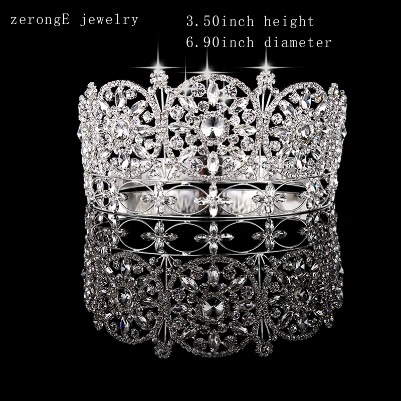 Discount Luxury Large high quality full circle crown pageant miss world rhinestone round full tiara crown va
