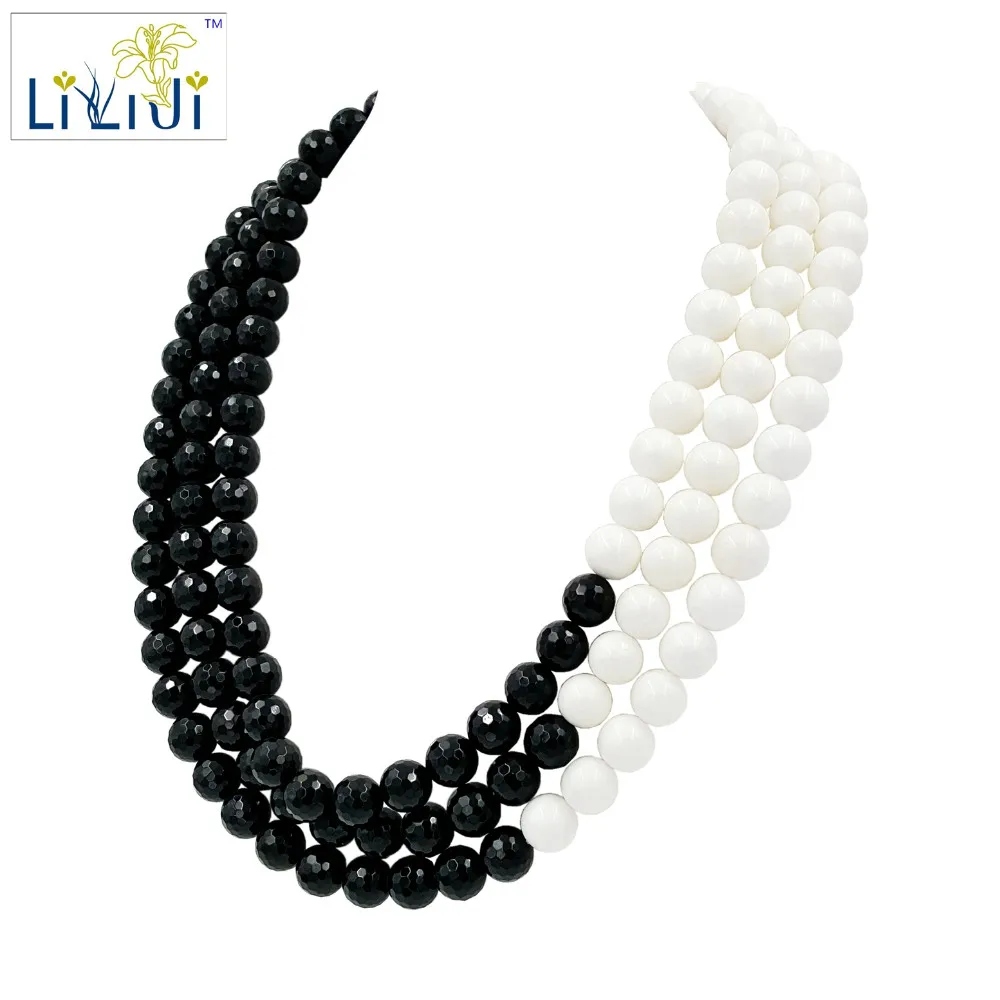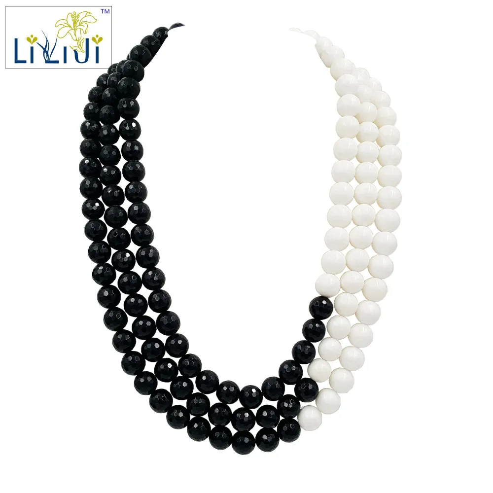 Sale Natural stone Black Agates &Natural Tridacna Necklace Black&White Fashion Jewelry