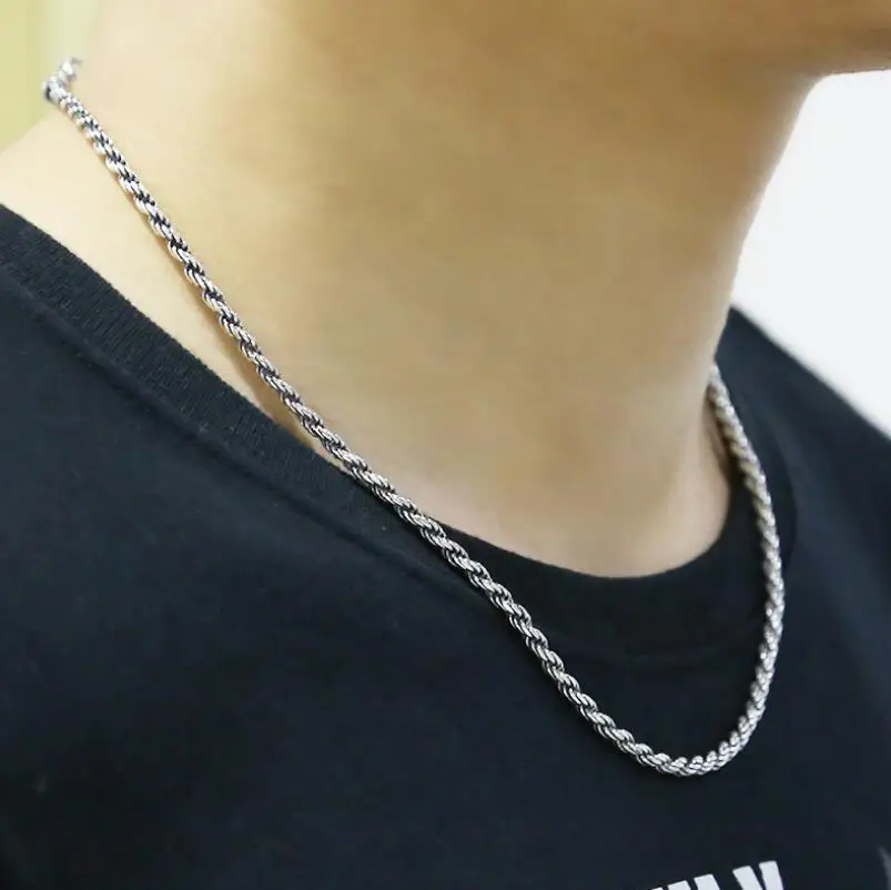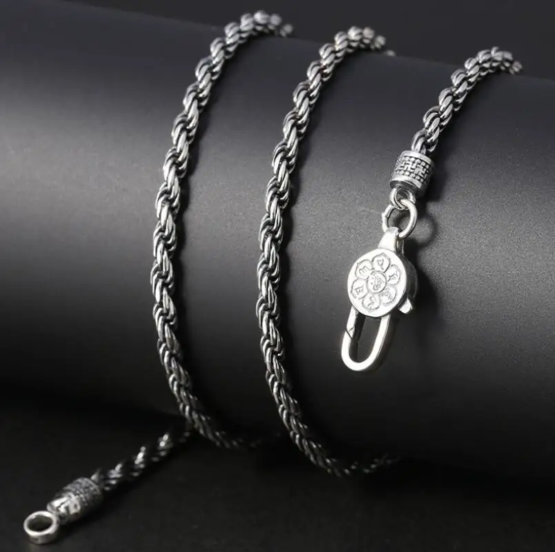 Get 3mm Thick 925 Sterling Silver Jewelry Thai Silver Necklace Retro Unisex Twist Cross Link Chain Neck