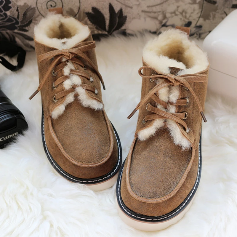 Buy Top Quality Fashion Beckham snow boots for men lace-up winter shoes real sheepskin leather nature w