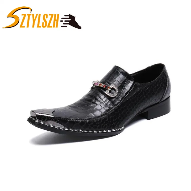 Sale Fashion Men's Crocodile Grain Dress Shoes Man Casual Pointed Toe Oxfords Mens Luxury Genuine Leathe