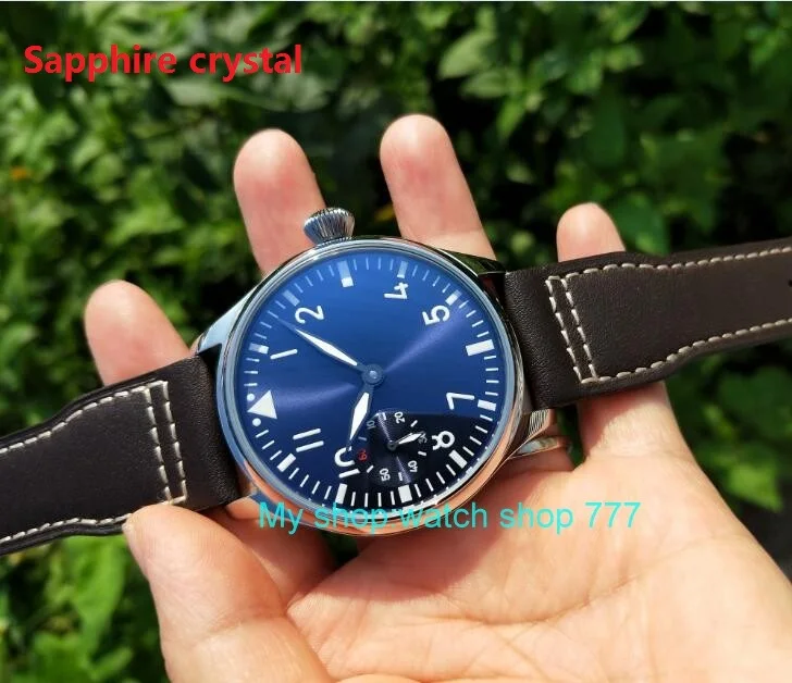 Discount Sapphire crystal 44mm PARNIS light blue dial Asian 6497 17 jewels Mechanical Hand Wind movement men