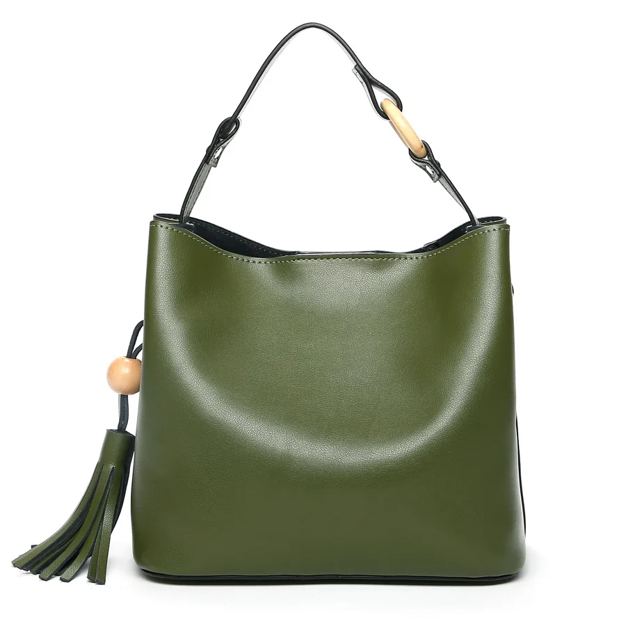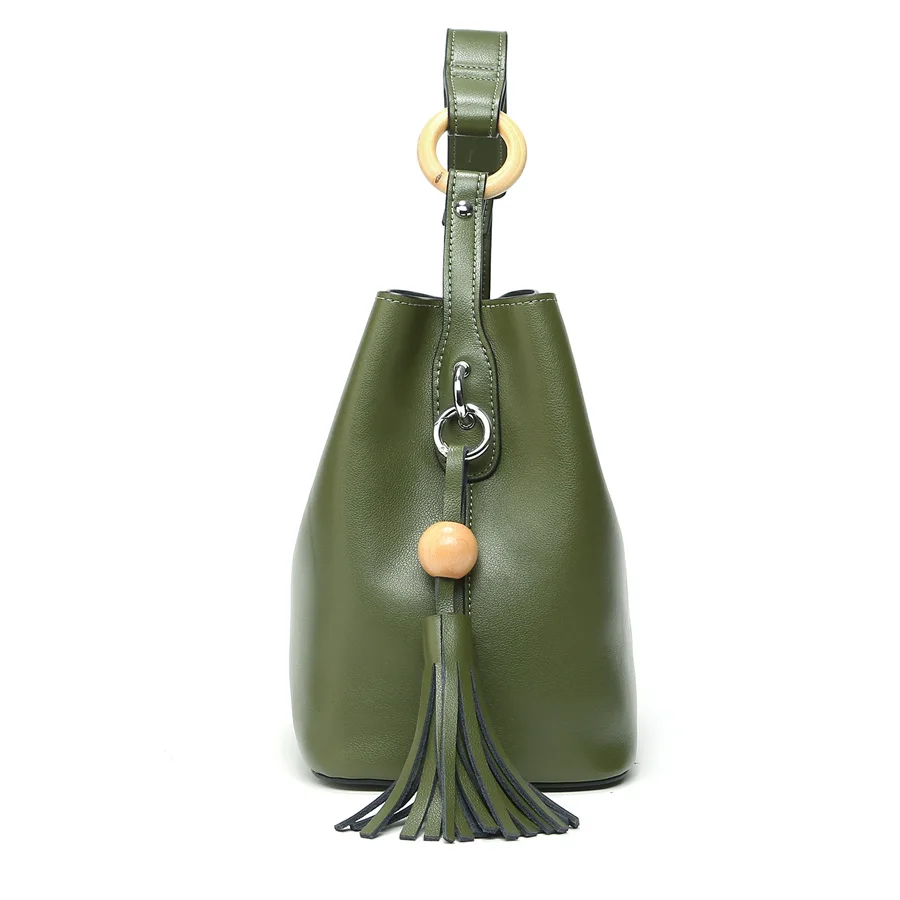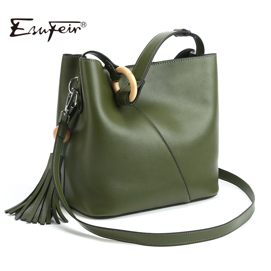 Hot 2018 ESUFEIR Brand 100% Genuine Leather Women Handbag Fashion Design Shoulder Bag Female Tassel Buc