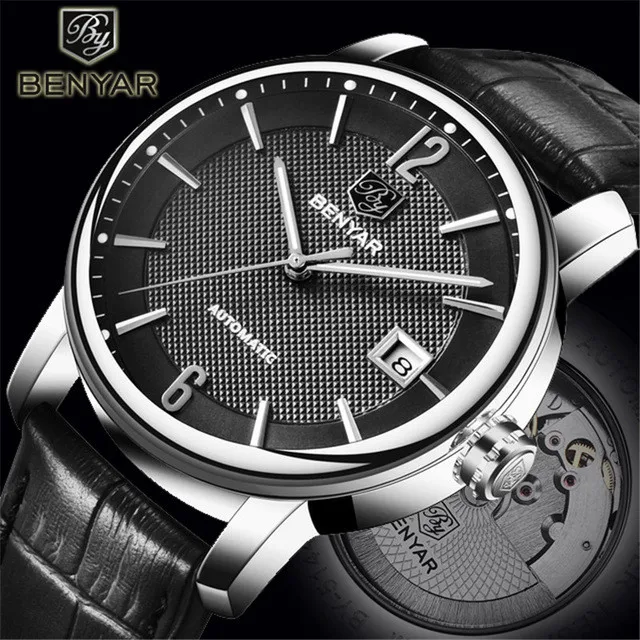 NEW BENYAR Top Brand 2018 New Casual Fashion Men's Leather Watches Business Automatic Mechanical Men Sp