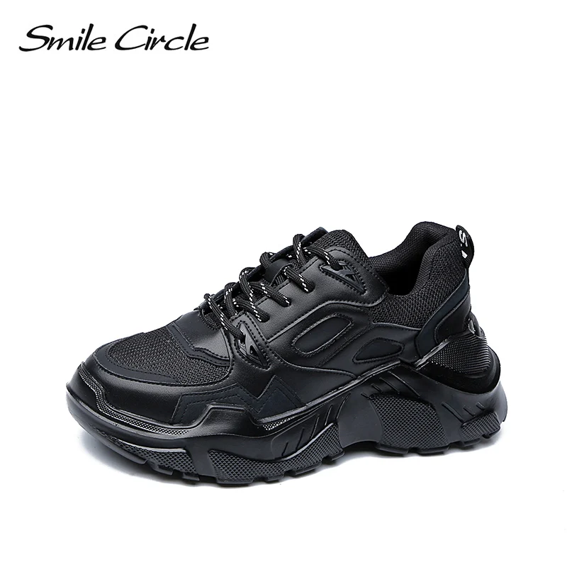 Sale Smile Circle women's sneakers wedges shoes chunky platform sneakers ladies shoes Fashion Lace-up fl