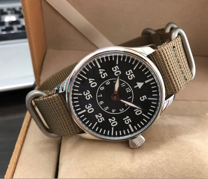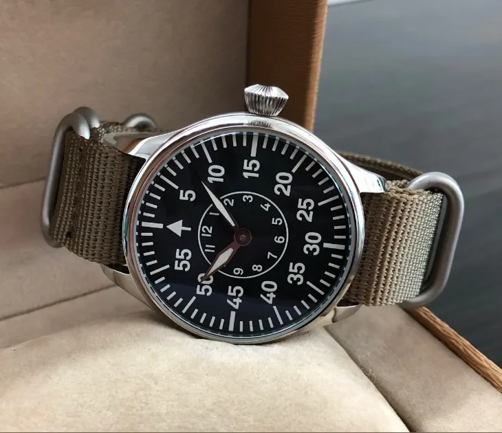 Get 44mm GEERVO black dial two hands Asian 6497 17 jewels Mechanical Hand Wind movement men's watch lum
