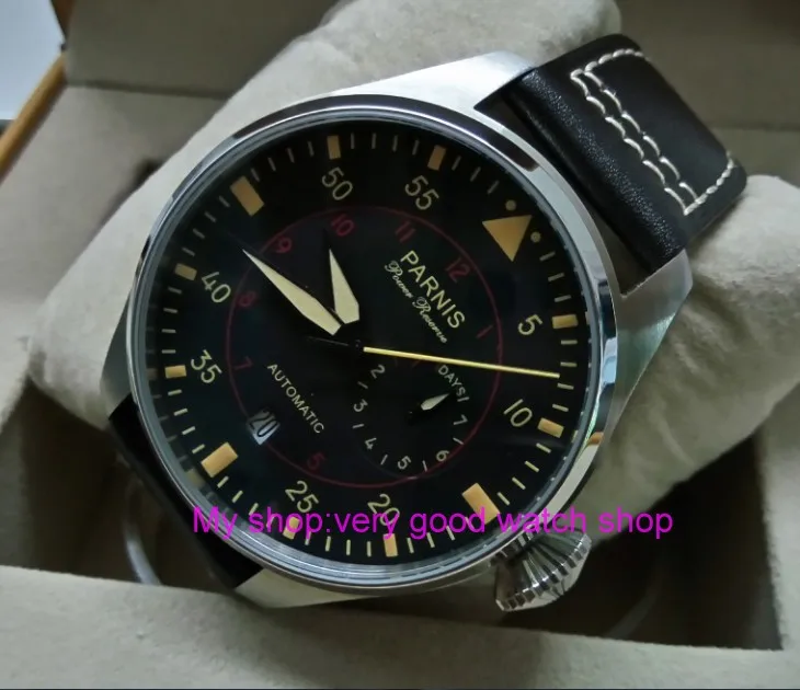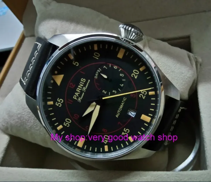 Hot 47mm PARNIS big pilot black dial Automatic Self-Wind Mechanical movement men's watches power reserv