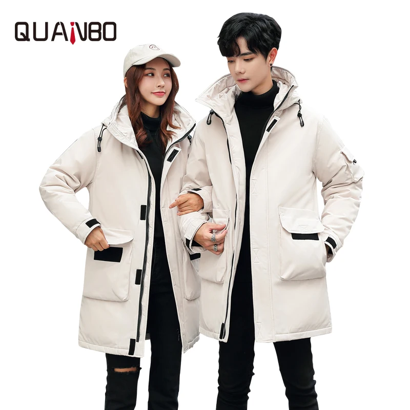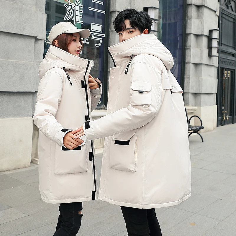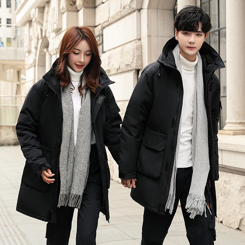 Buy Men's women's Down Coat 2019 new men's tooling down jacket fashion long section youth high students