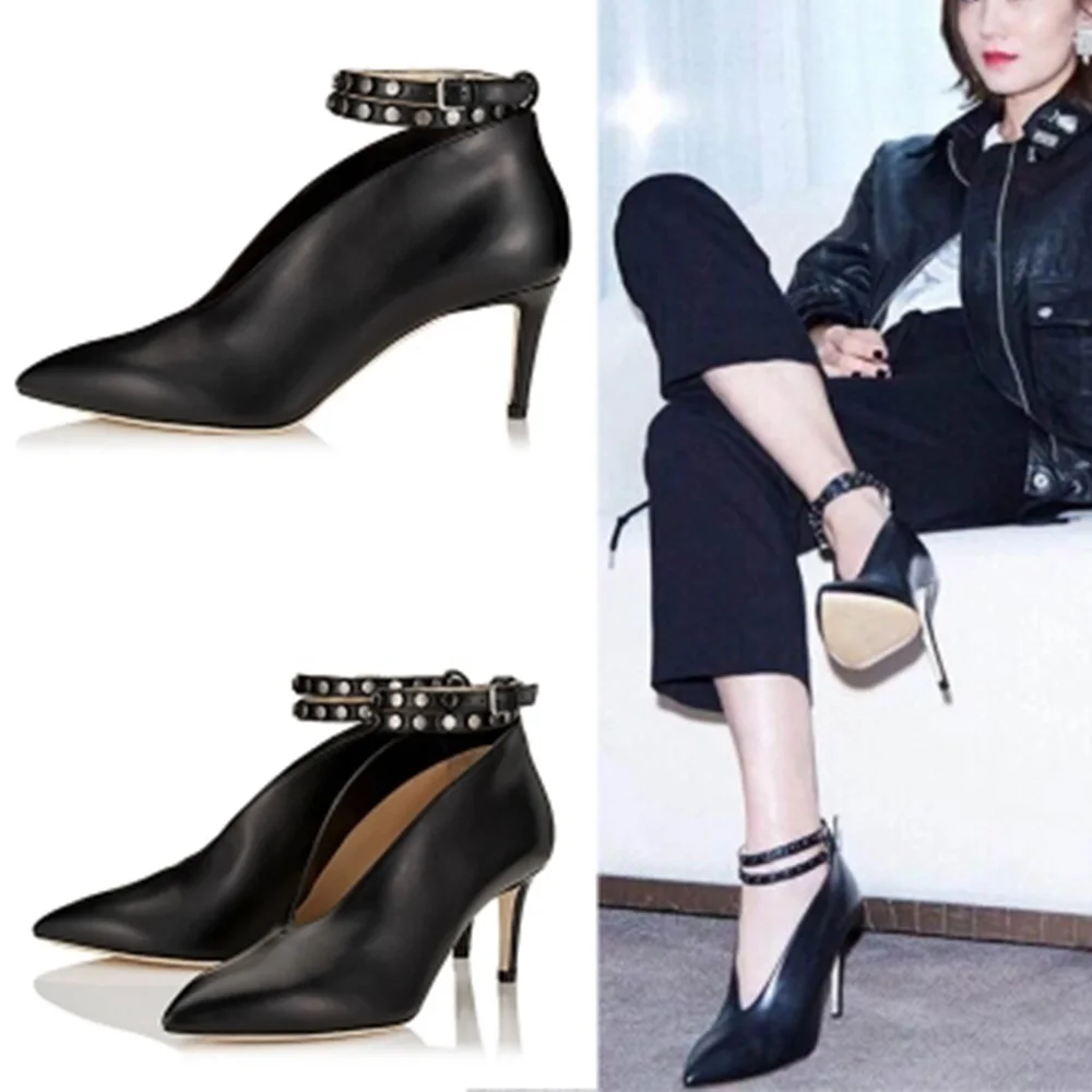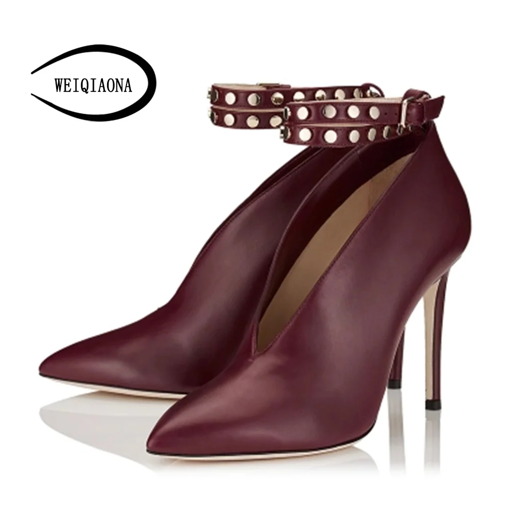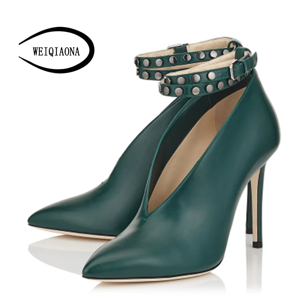 Get WEIQIAONA 2019 Brand Design New Star Model Fashion Women Shoes Pointed Toe High Heels Genuine Leath